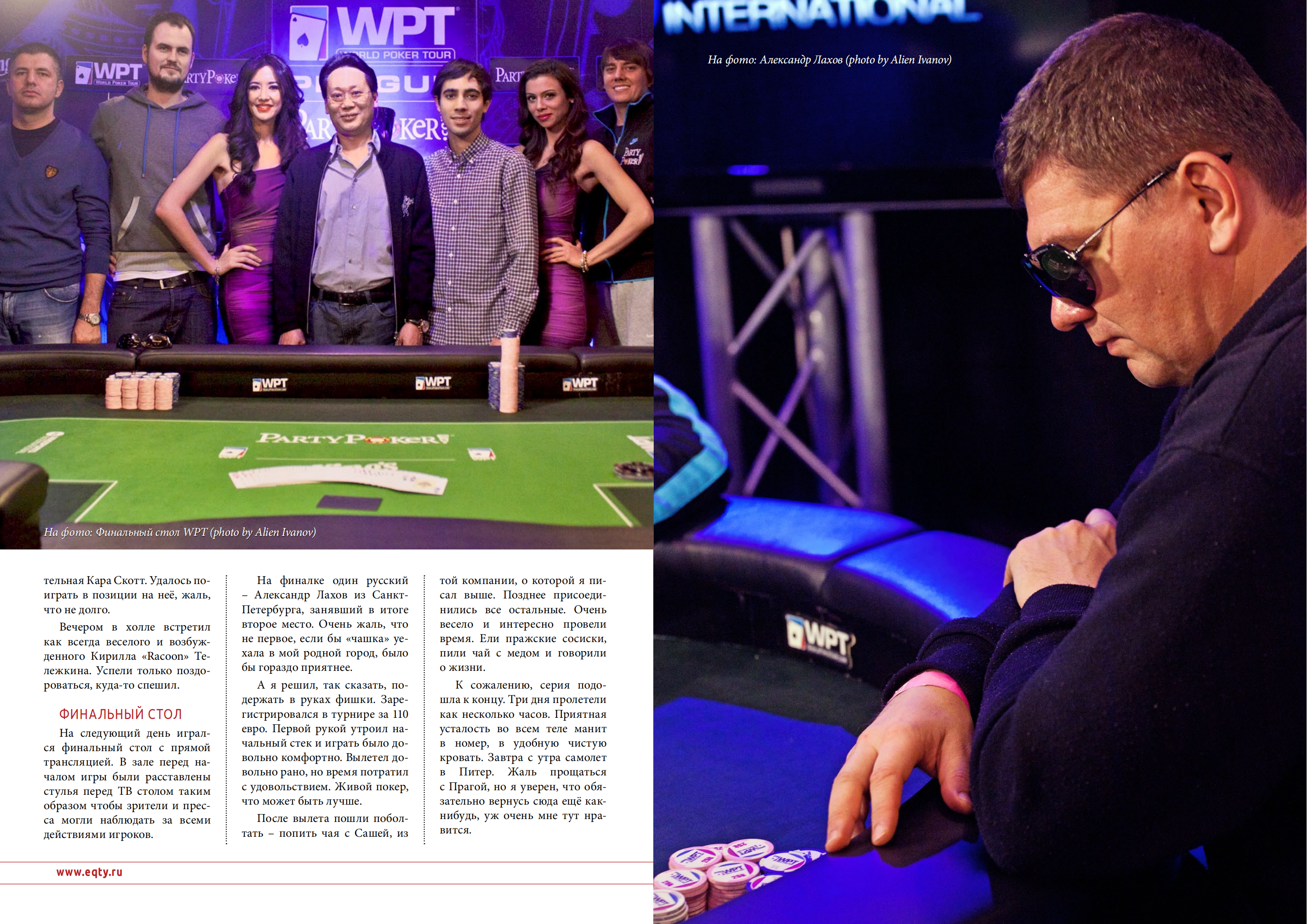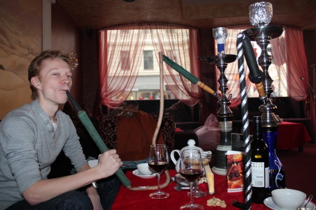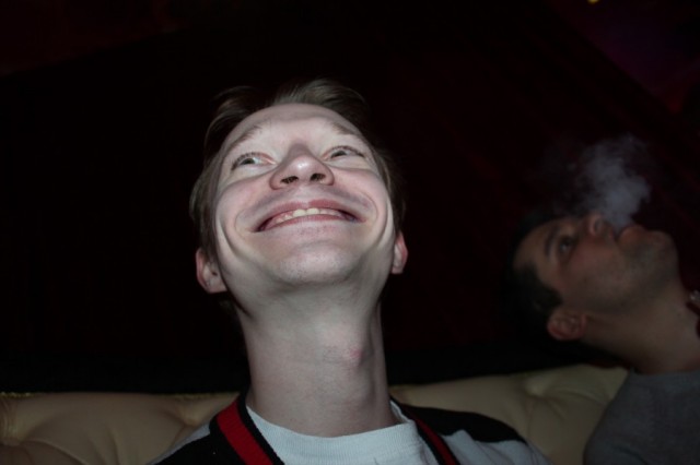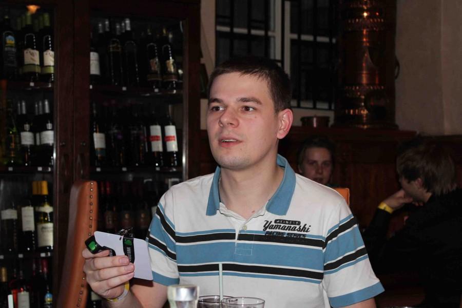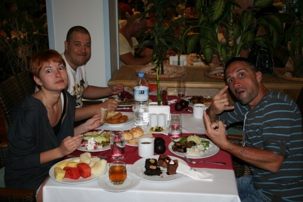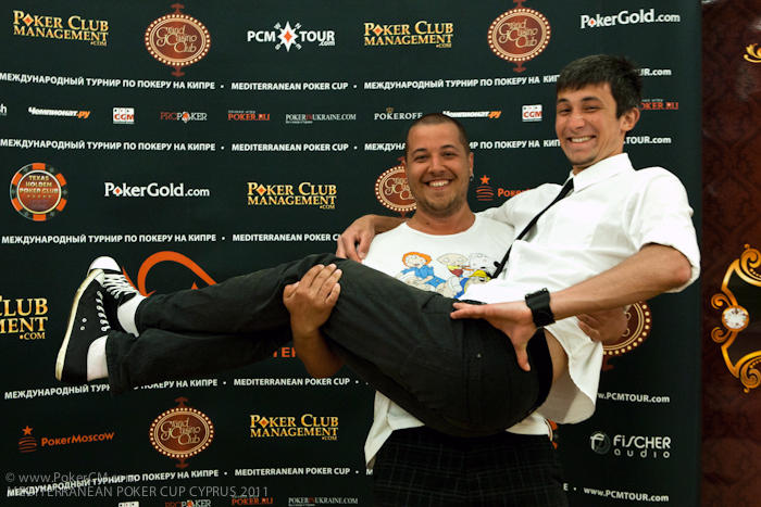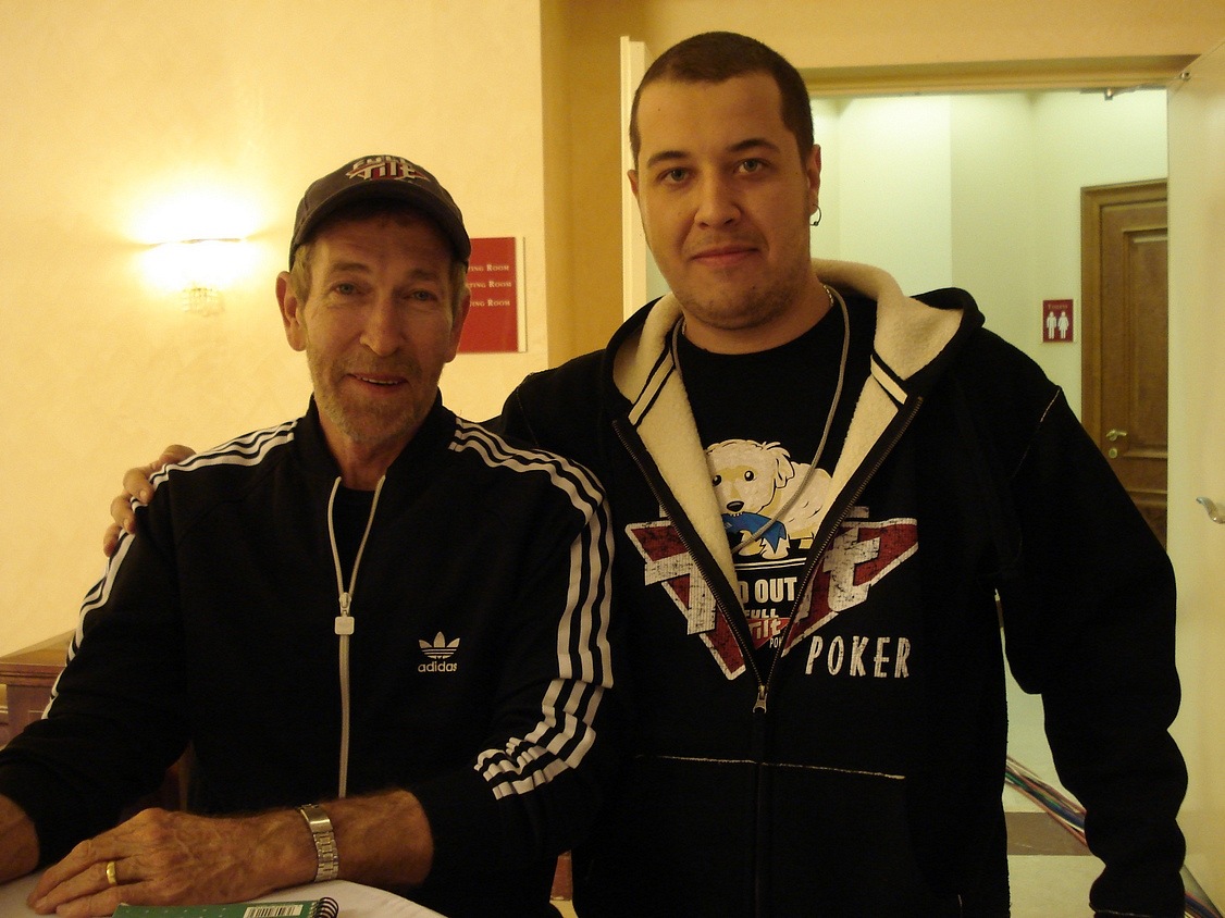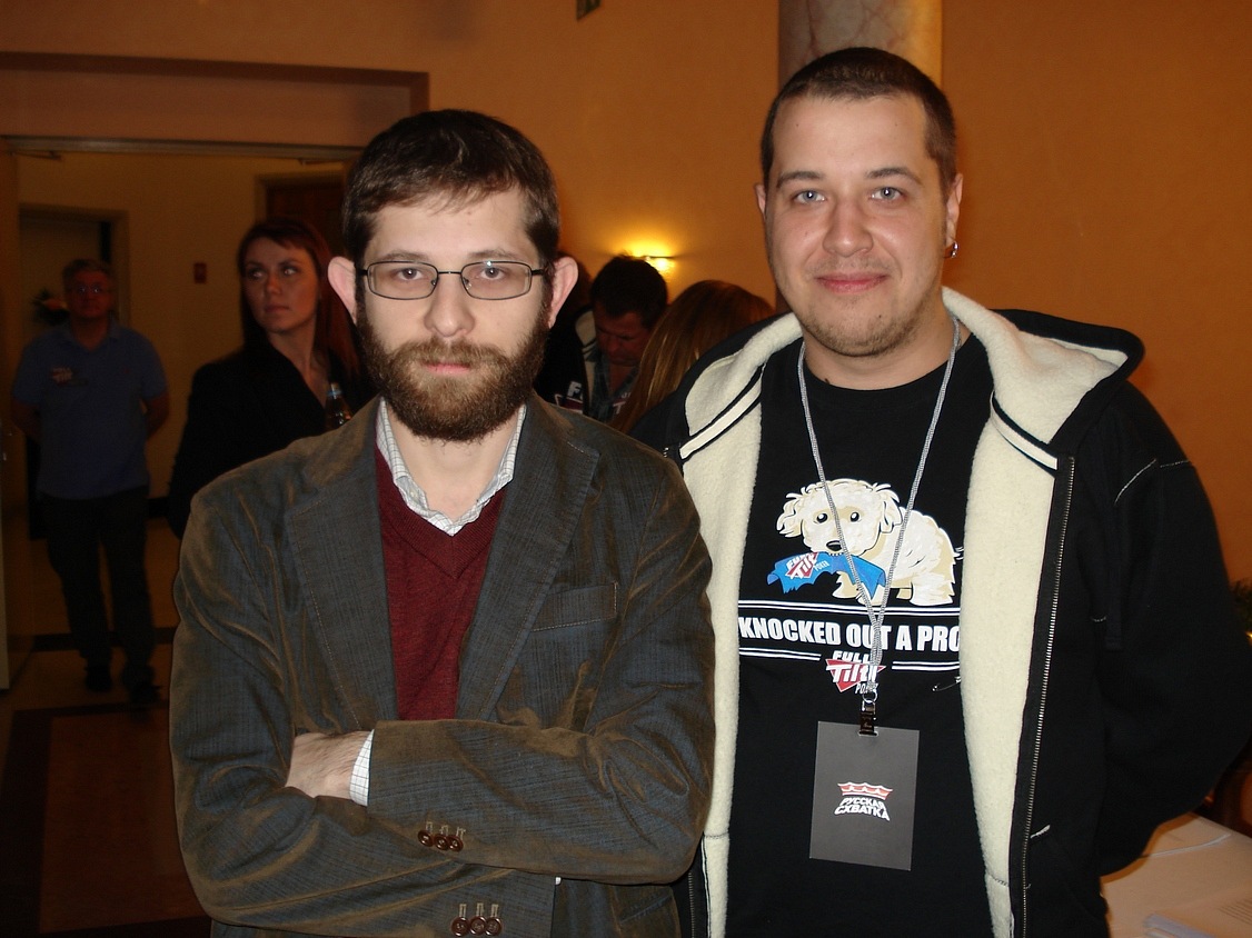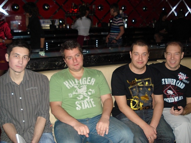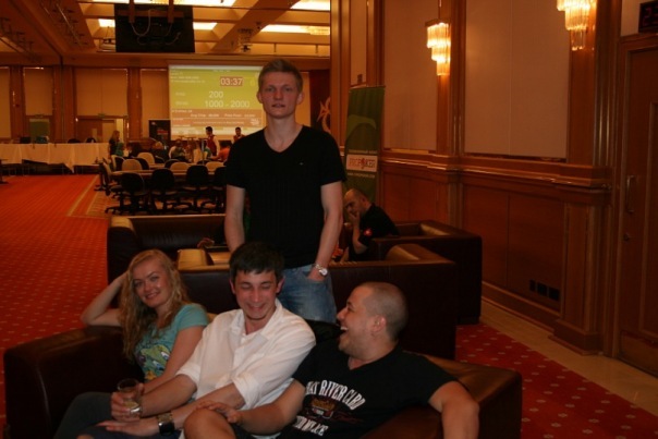 Блайнды 50-100. у меня стэк 5800. UTG (лузово-пассивный коллингстэйшн) call, я QQ MP2 raise 450, BU (слабый виктайт, рейзящий любого туза) 1500 все fold я подумал и call. Флоп J23 две пики. Я подумал и чек. До этого этот парень всегда ставил продолженную. Банк 3250 мой стэк 4300. он ставку 3000 я алын он колл. Показал АК без пик. Терн 4, ривер А. Я иду курить. Примерно в это время в казино, где мы играли, пришел Макс. Макс живет в Эстонии и является обитателем покерофф. Мы посидели – пообщались пару часов, пока Серега доигрывал этот турнир и попрощавшись с Максимом (Сергей вылетел на бабле А4s < 77) мы поехали в отель, потому как очень устали и кэш играть в тот вечер было явное минус ЕВ. По приезду в отель мы заказали пиццу, накупили в баре отеля всякой всячины и отлично отпраздновали встречу.