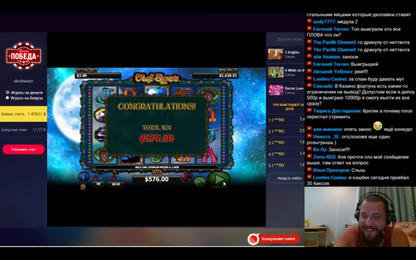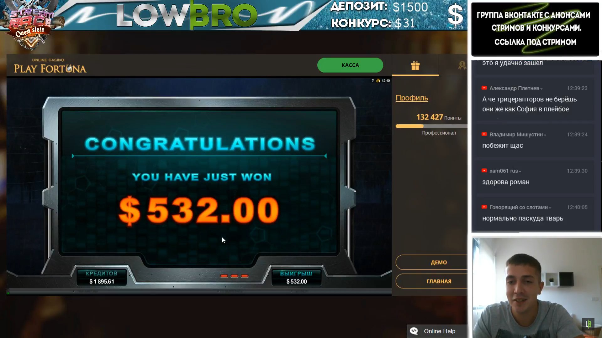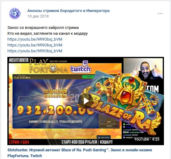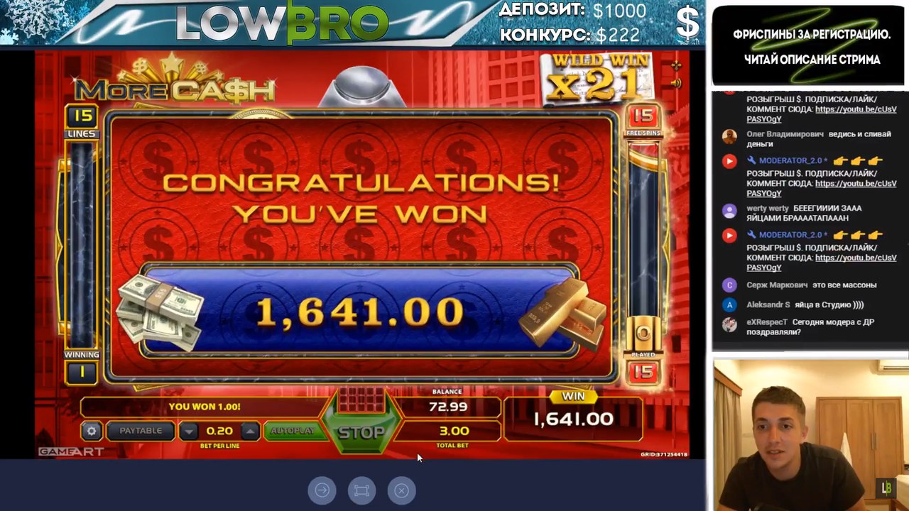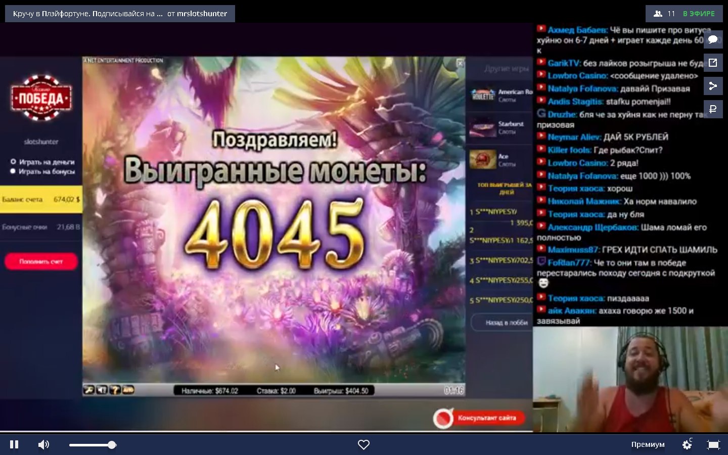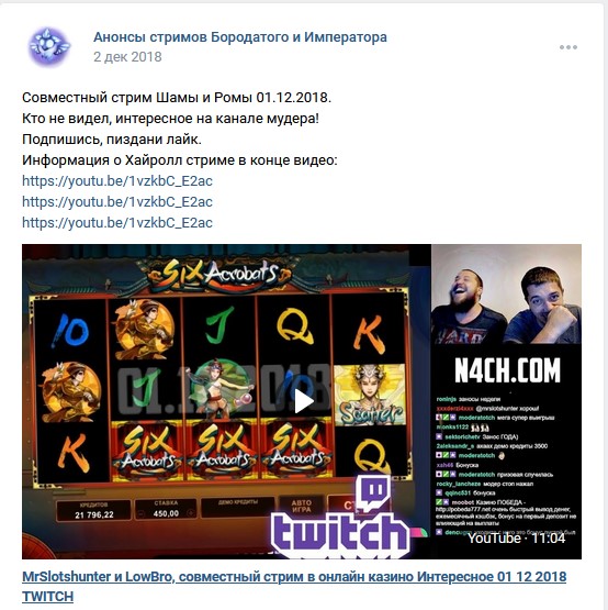 На стримах тоже есть не плохие результаты. Причем как в слотах, так и в лайве