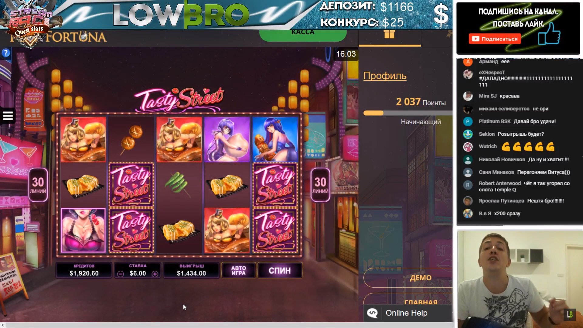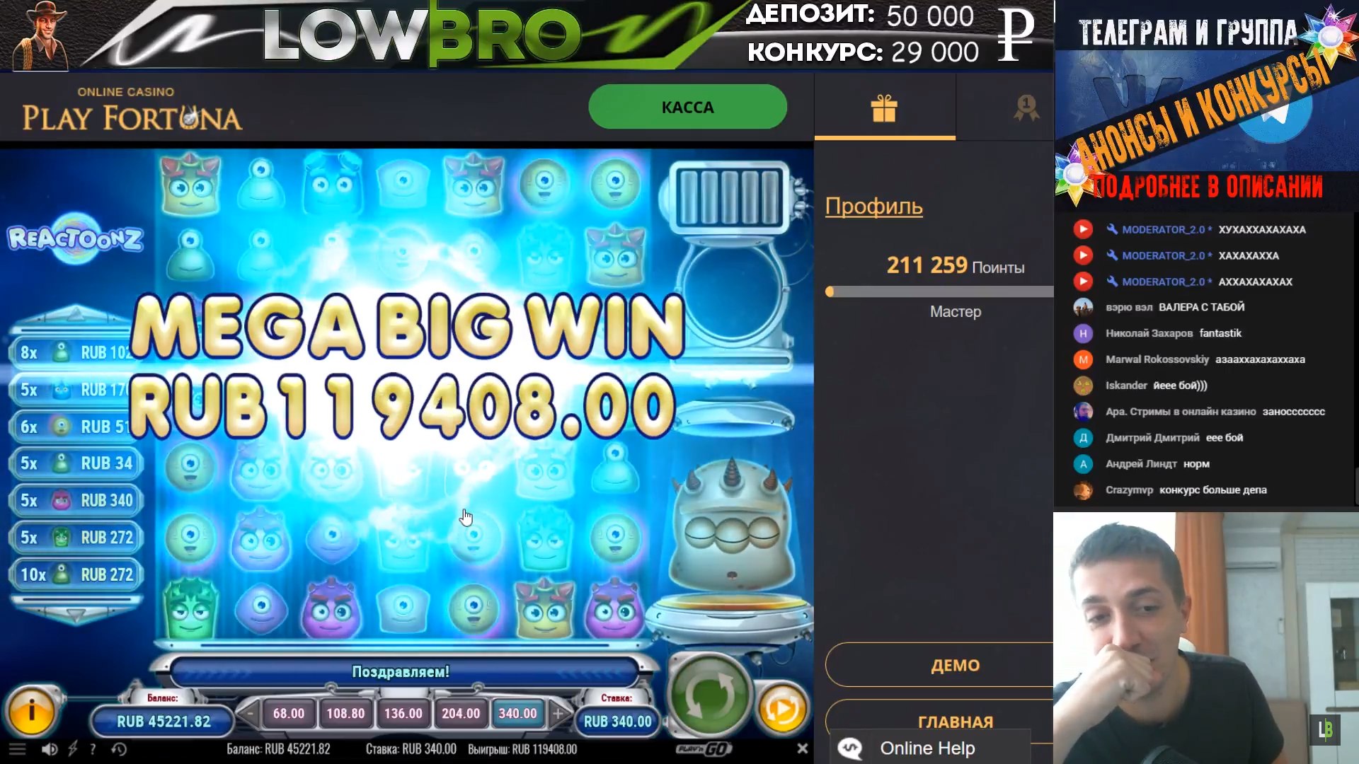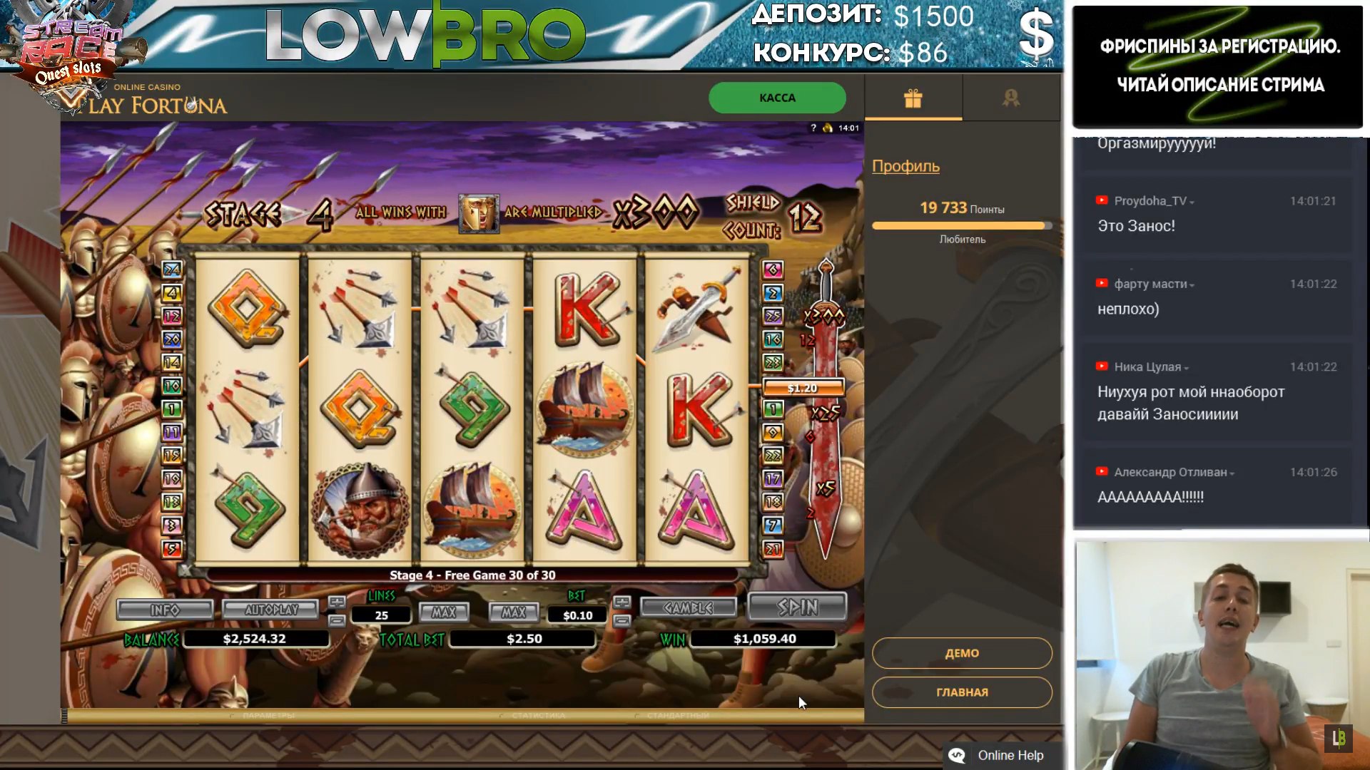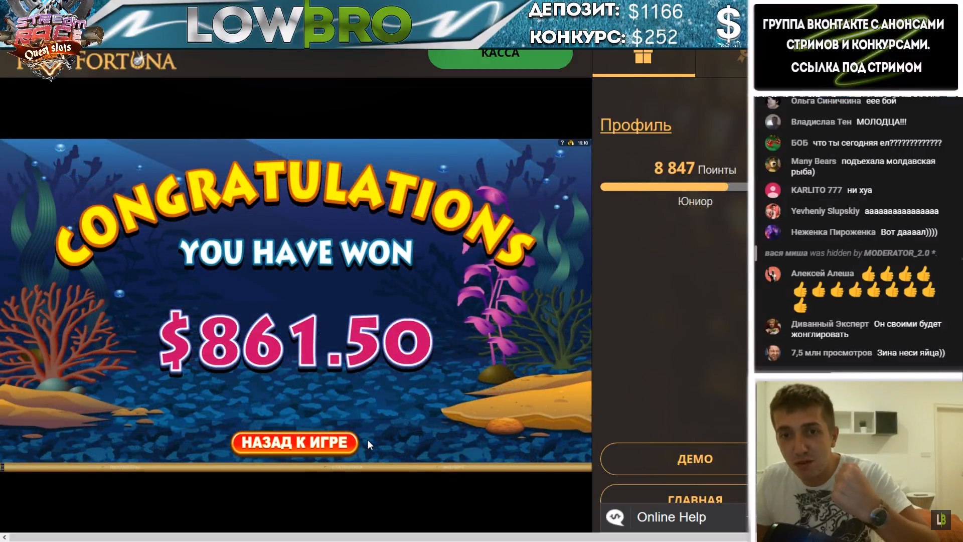 На стримах тоже есть не плохие результаты. Причем как в слотах, так и в лайве