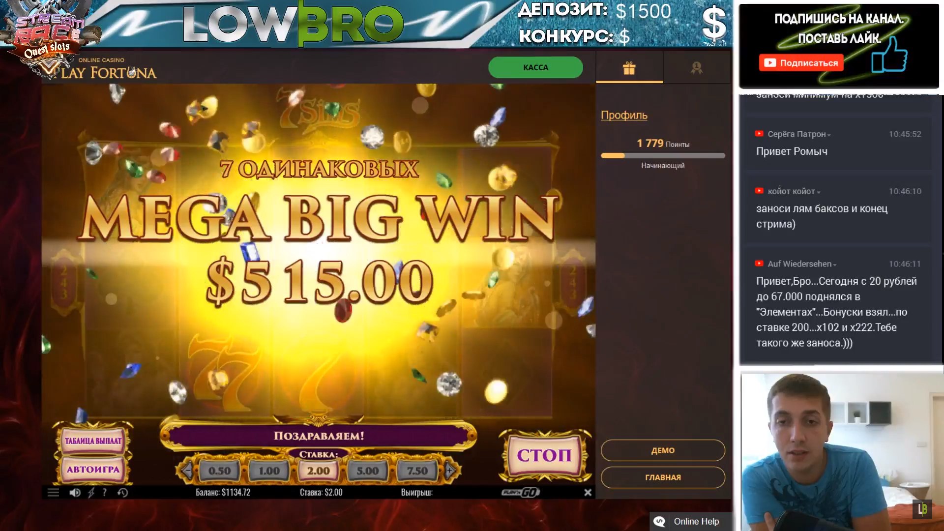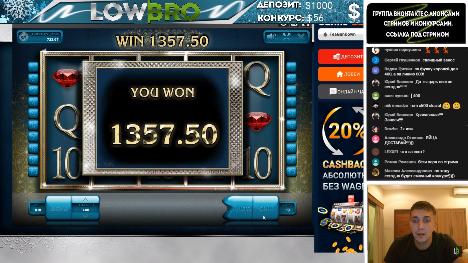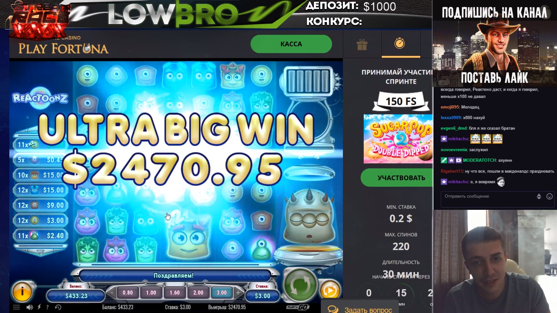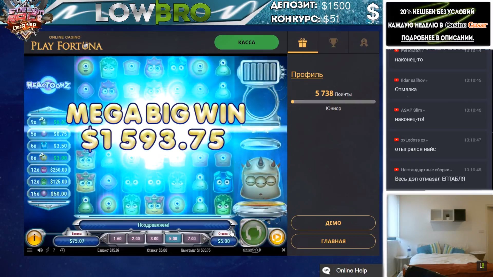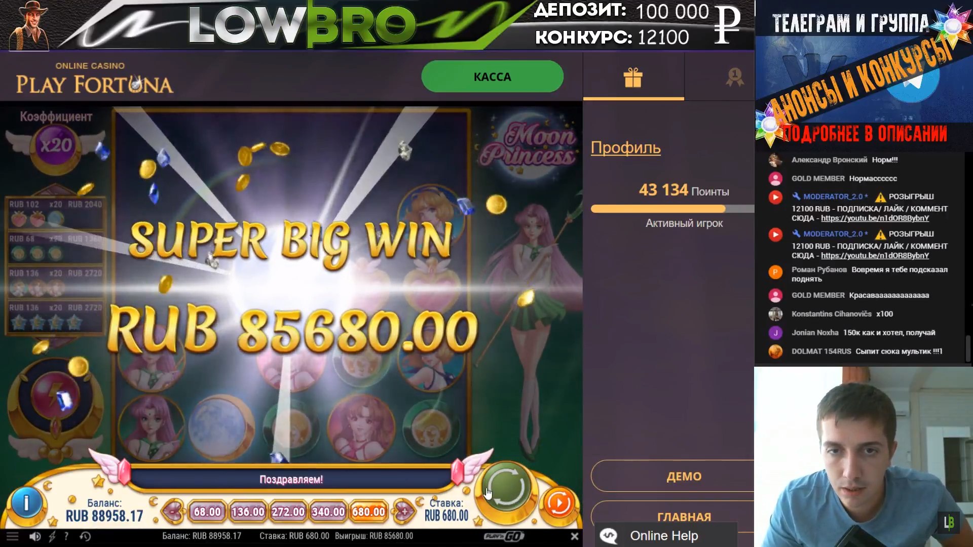 На стримах тоже есть не плохие результаты. Причем как в слотах, так и в лайве