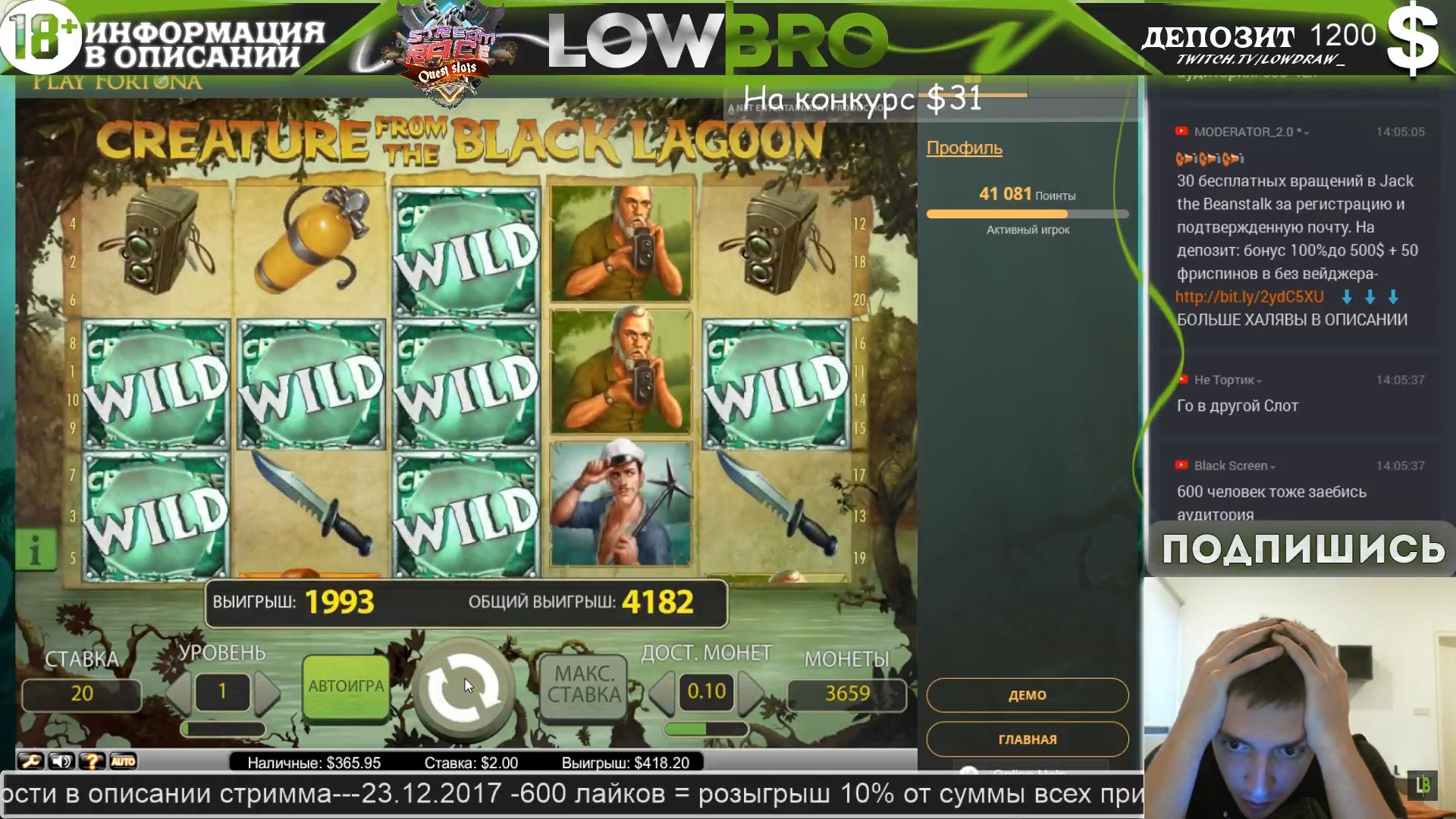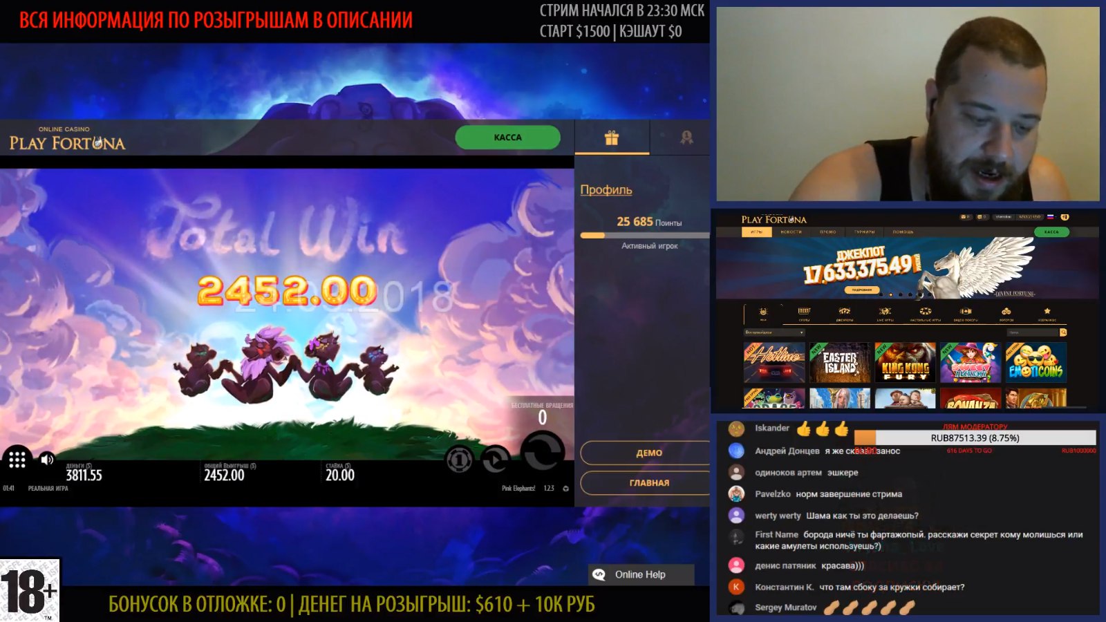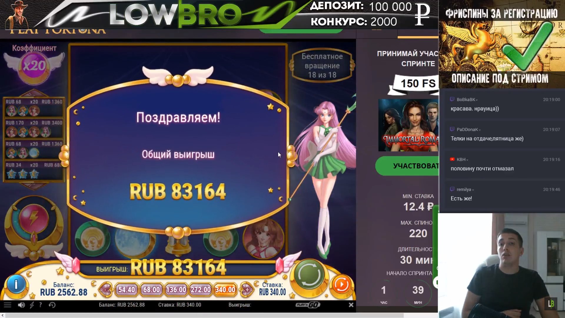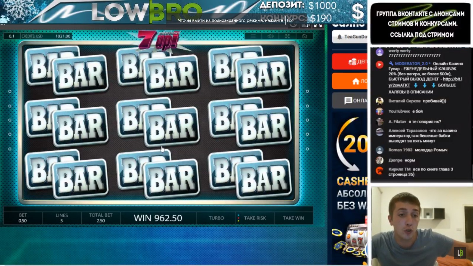 На стримах тоже есть не плохие результаты. Причем как в слотах, так и в лайве