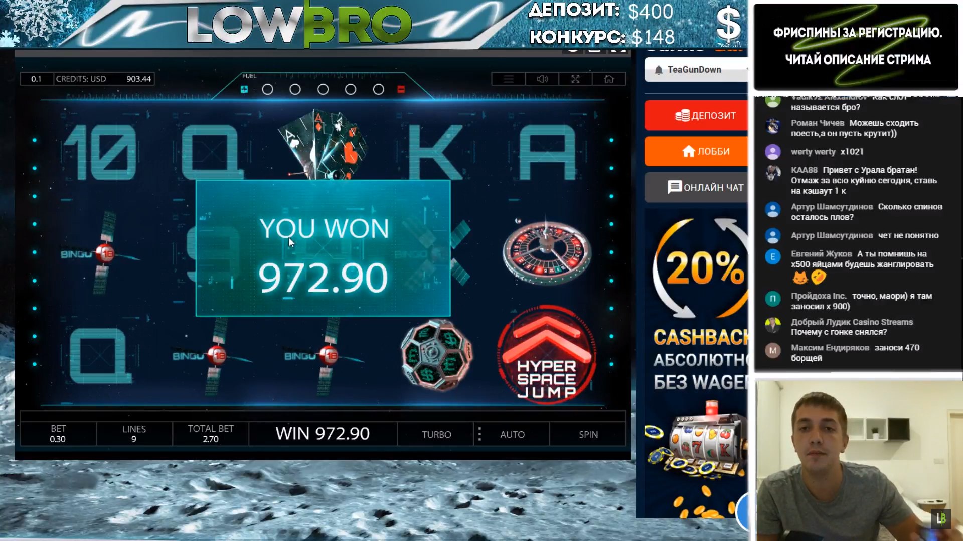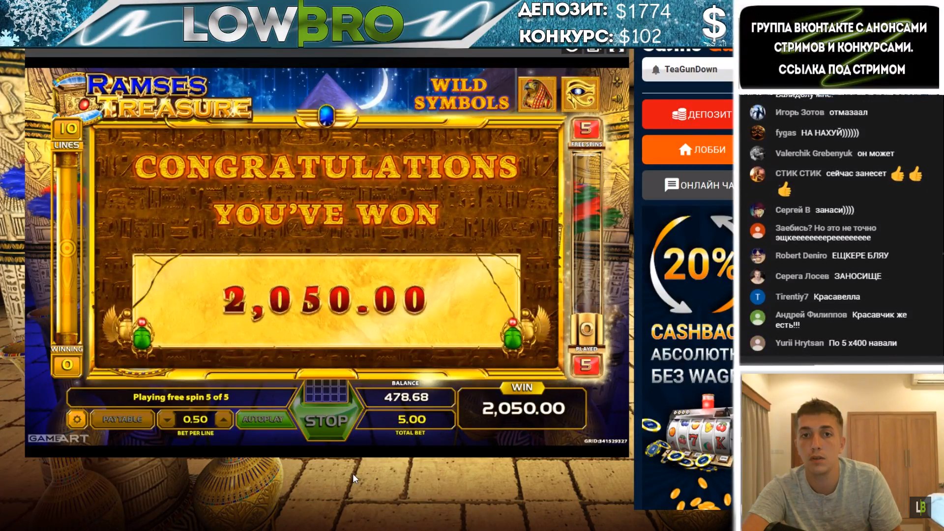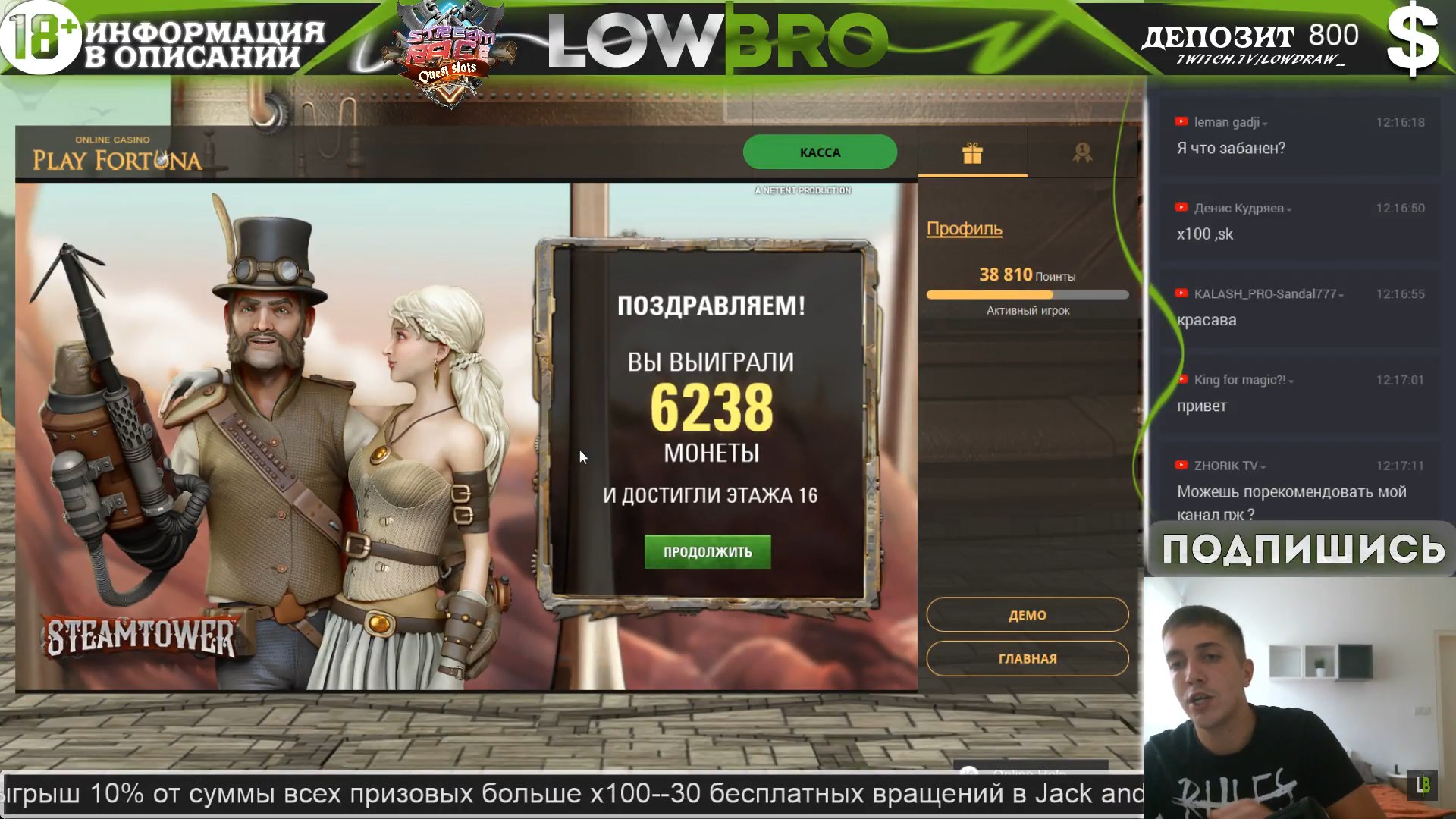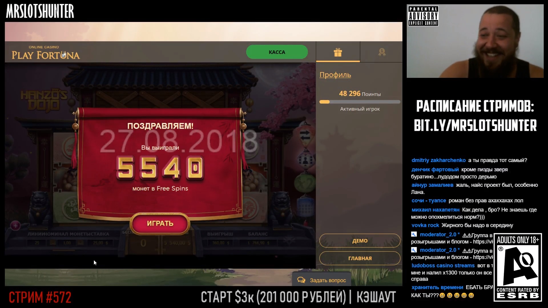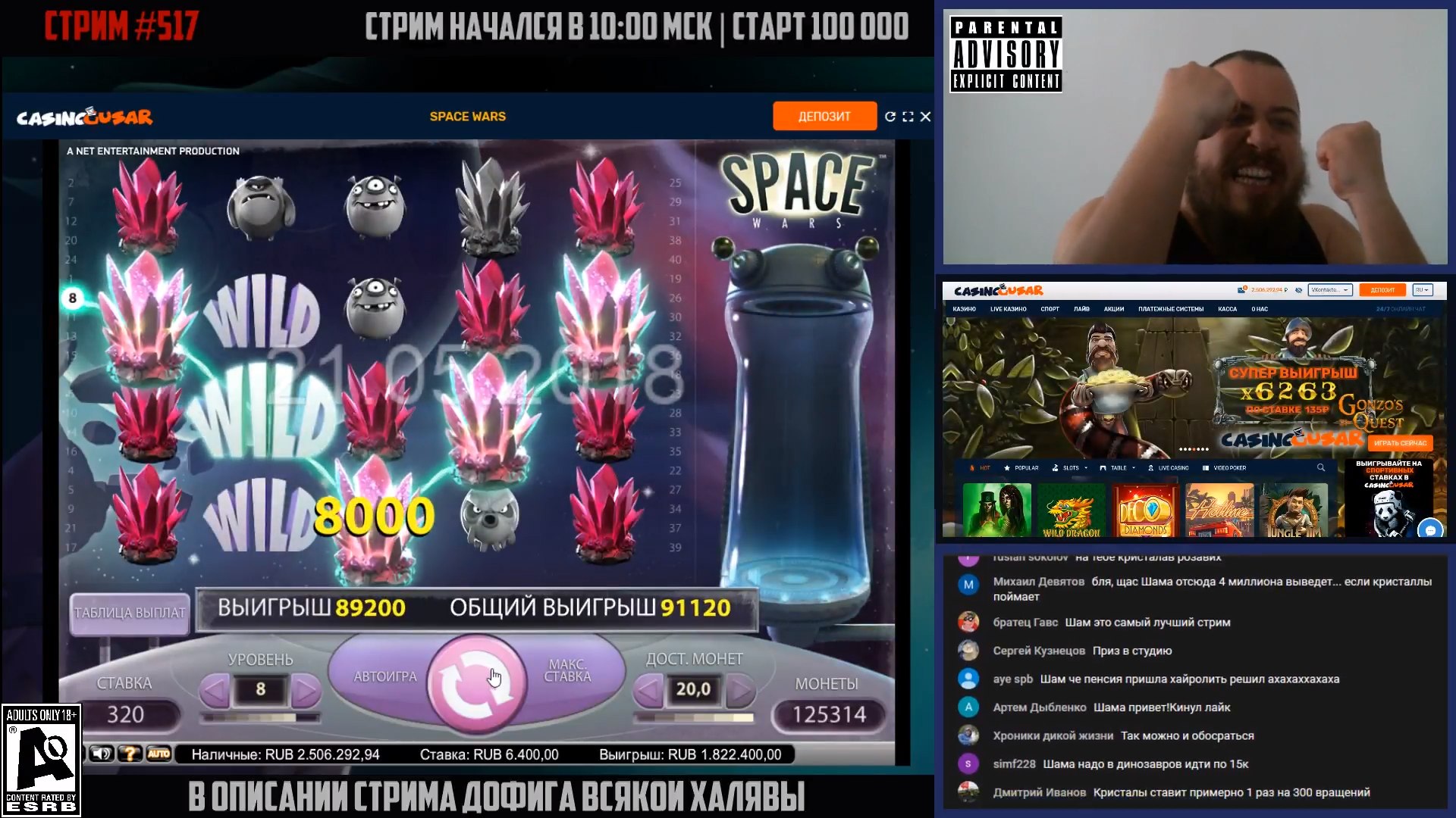 На стримах тоже есть не плохие результаты. Причем как в слотах, так и в лайве