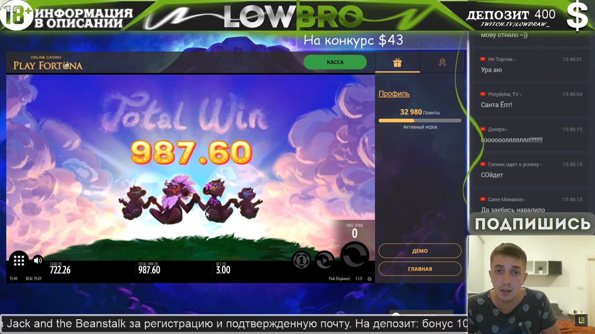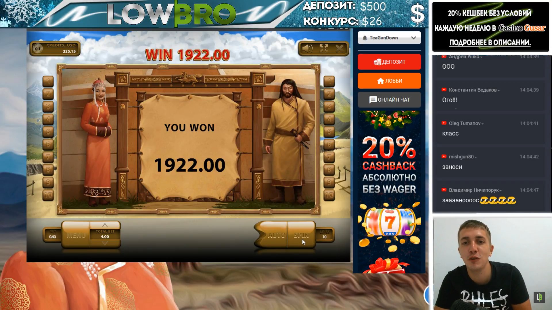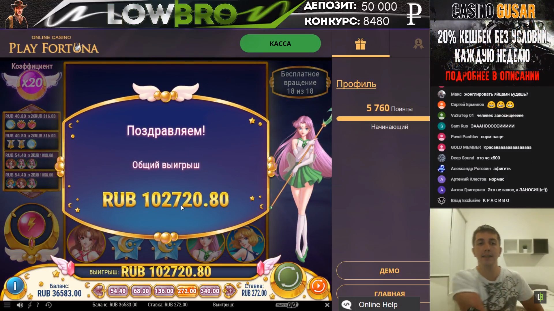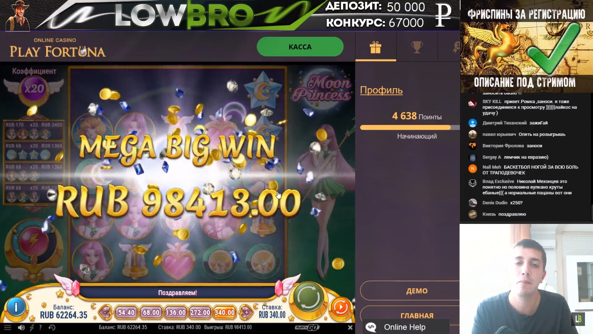 На стримах тоже есть не плохие результаты. Причем как в слотах, так и в лайве