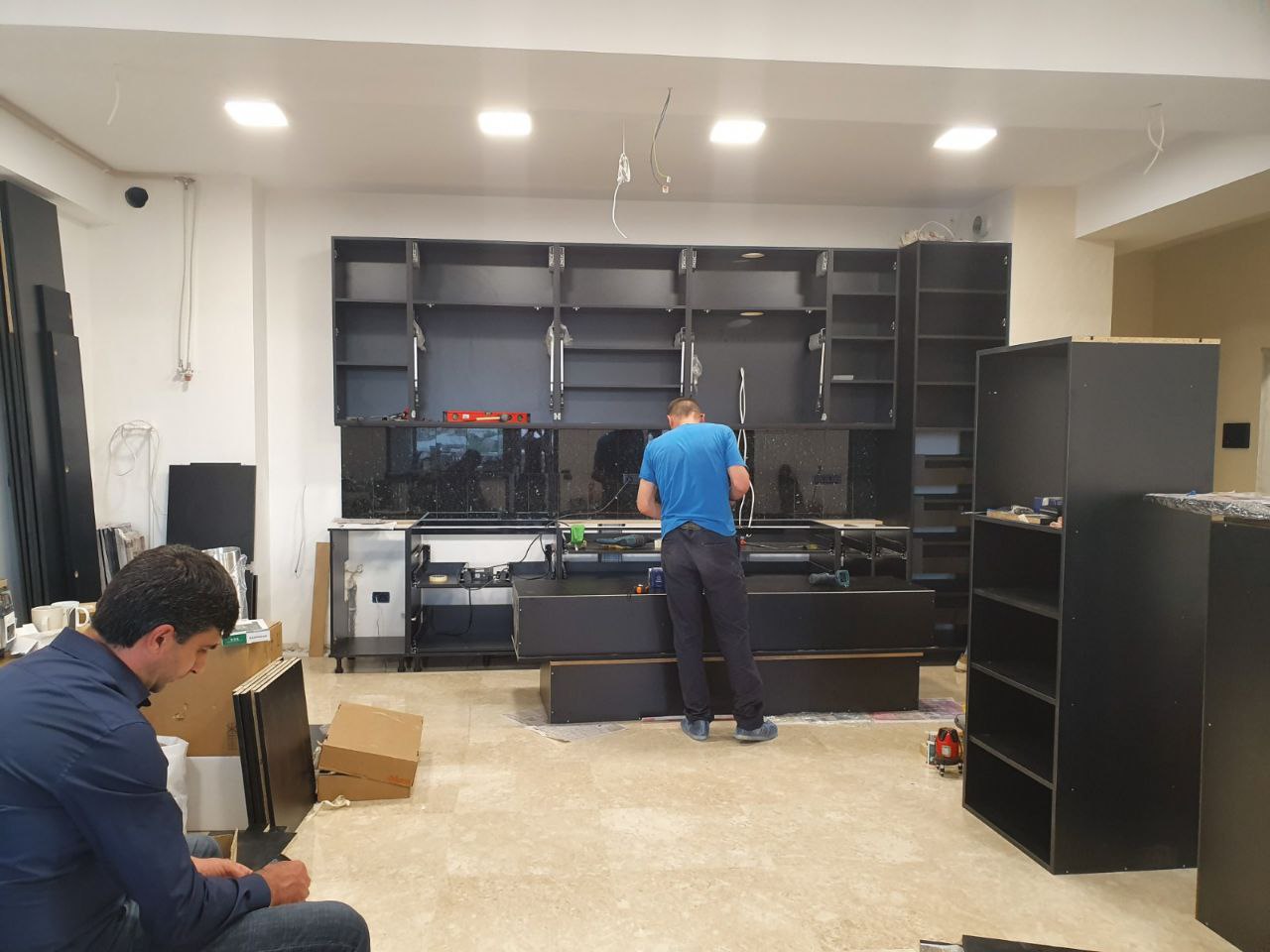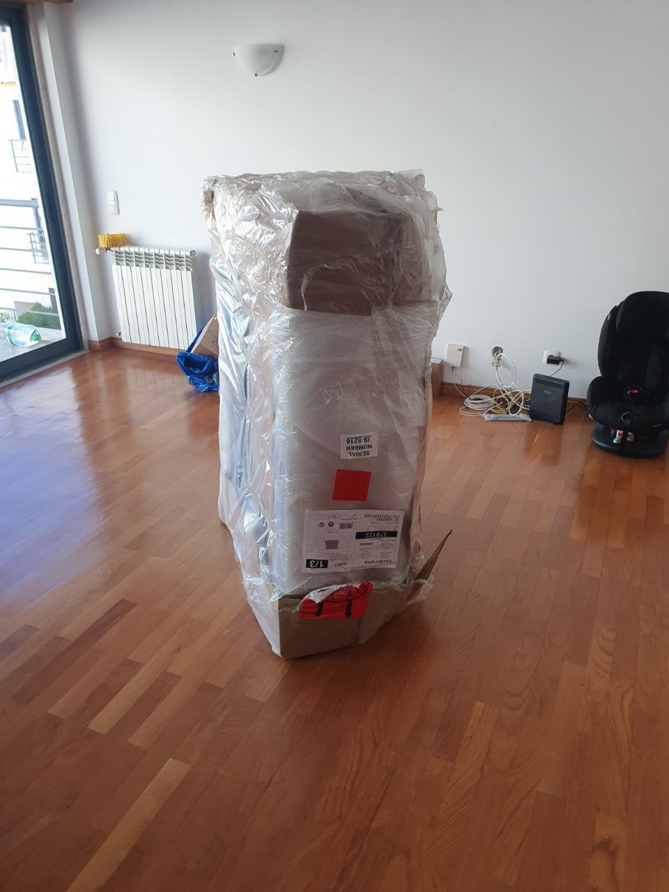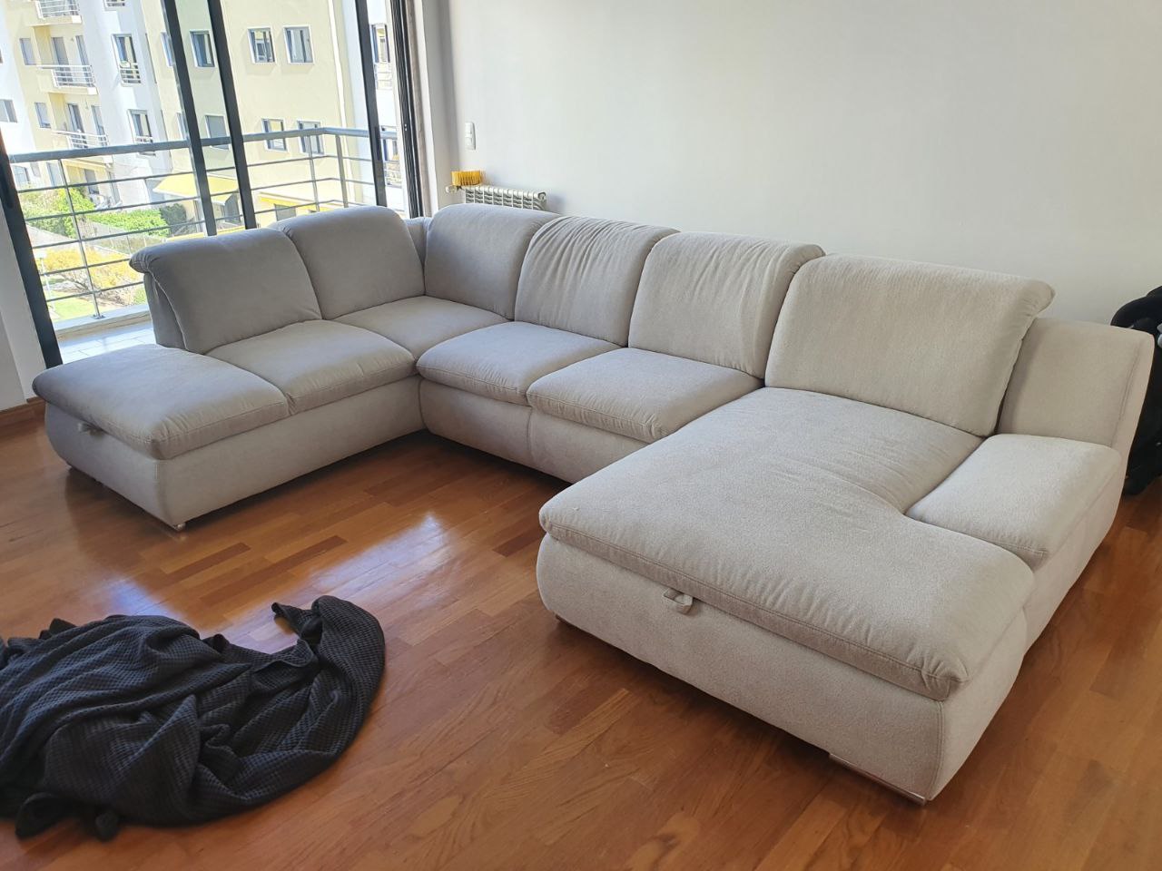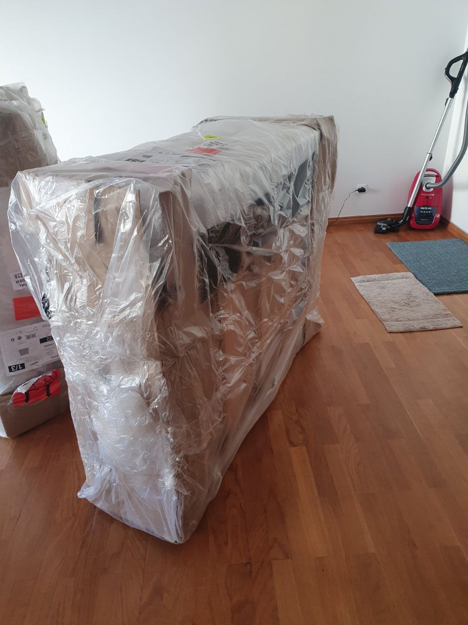 Купили в гостинную огромный диван и наконец то привезли кровати. Диван кстати оказался таким большим, что чтобы его принести пришло снимать двери
