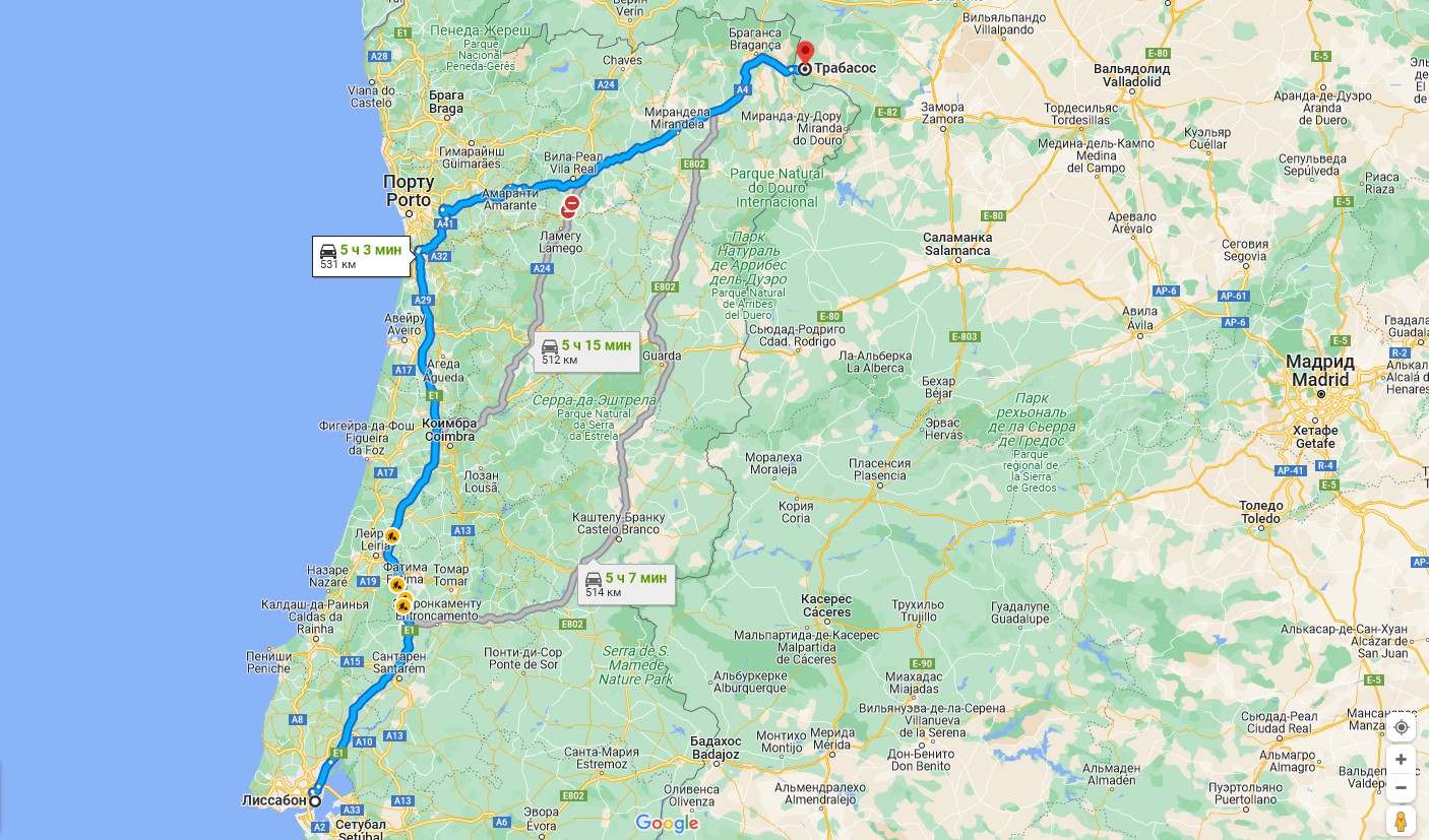 В первых числах ноября мы с Ланой сгоняли одним днем в соседнюю Испанию, где нам наконец таки привезли собак. Собаки ехали из Москвы, землей. У компании, которая занималась перевозкой была лицензия на деятельность до Испании, поэтому договорились, что встретим собак в испанском, приграничном с Португалией городке Трабасос.
