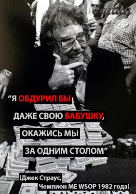 Всё это время американец все больше и больше нажирался. Он приходил, собирал 2-3 сета на флопе, удваивал стэк и опять уходил пить на час – полтора. Когда приходил, история повторялась. Этот самый американец в результате попал за финалку.