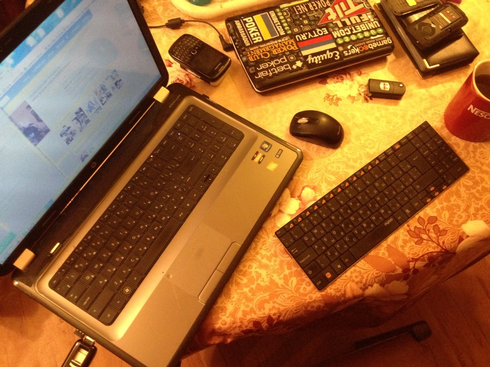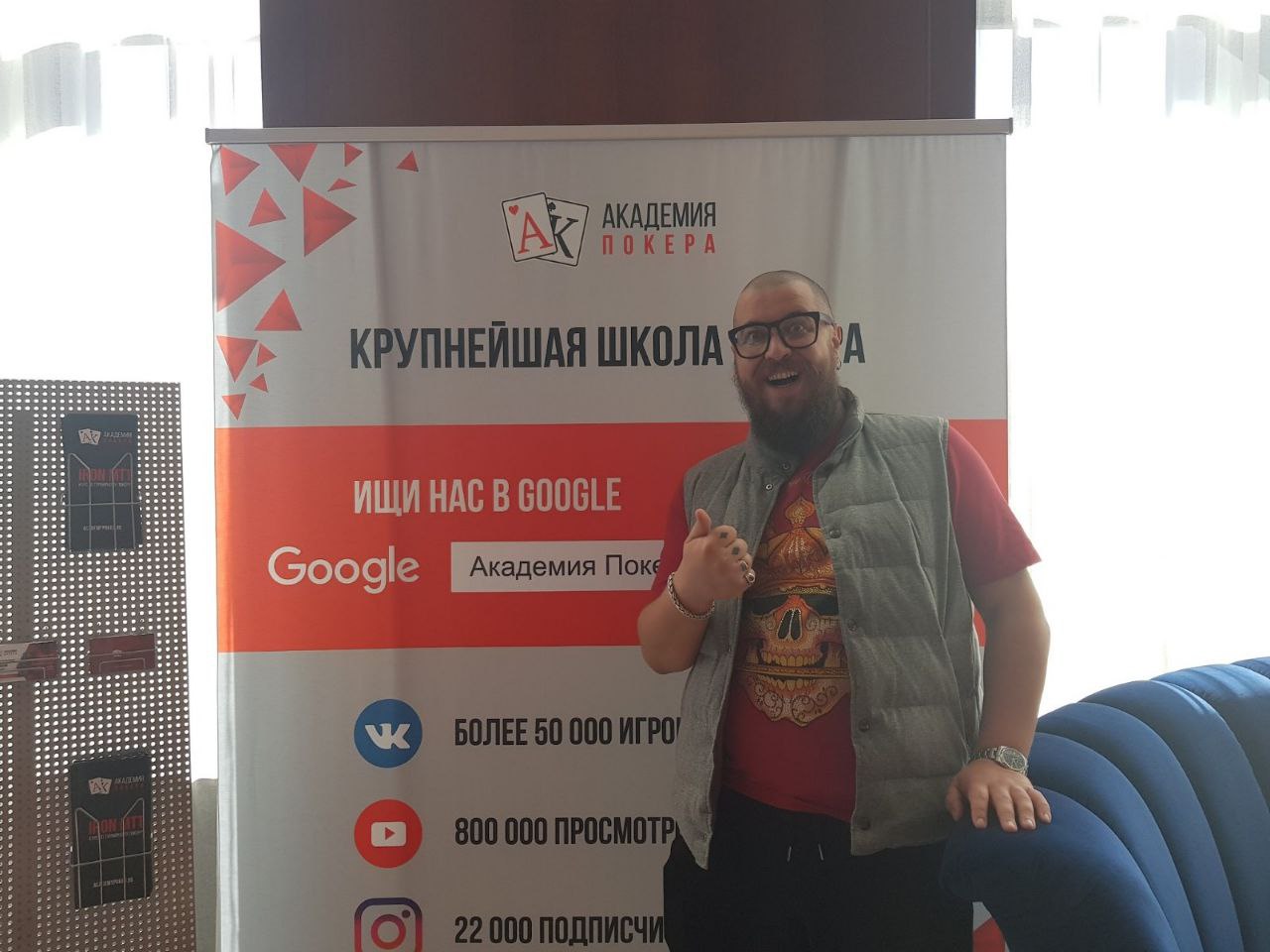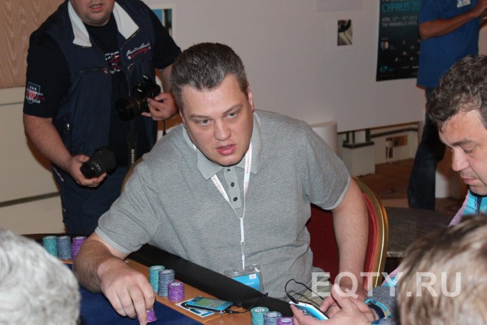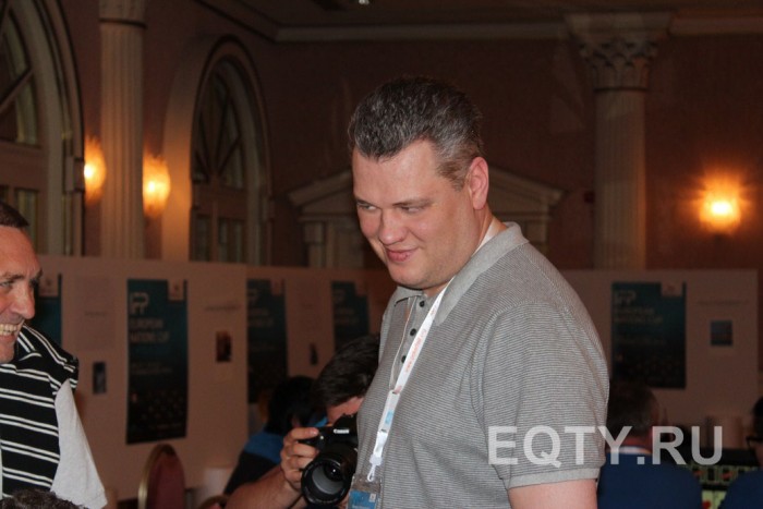 Далее почти ничего интересного со мной не происходила. К нам подсадили Петра из команды Покер Москоу, который мне на удачу дал наклейку с символикой их команды, кстате вроде ак после этого я пару раз выигрывал банки. Юкка Хелпи вылетел на абсолютно бредовой раздаче, просто проколив парня по совпадению. Я взял два банка блефом и добрал с русского (рус2) попавшего в тильт с флэша.