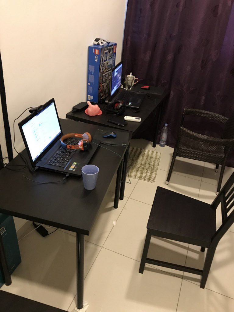 Параллельно с этим купили полки в Икеа, компьютерный стол и кресло в МедиаМаркте, всякой мелочи – посуды и тд. Вроде как стало по уютнее.