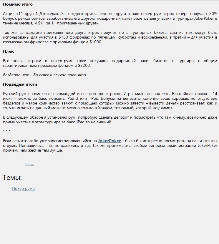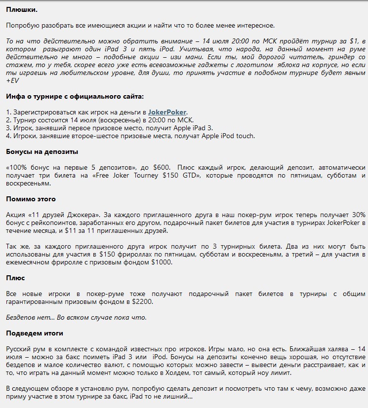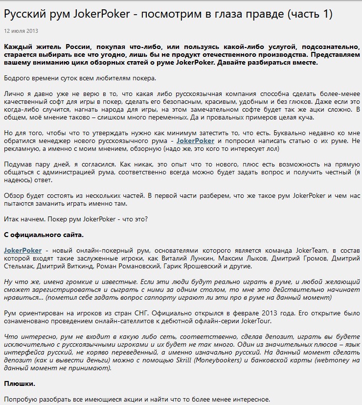 Начало работы с JokerPoker 12/07/2013 Мы познакомились с Димой, который на тот момент занимался развитием покер рума JokerPoker. Это долгая история, которую мне предстоит восстановить как пазл, однако первое упоминание нового покер рума есть в паблике Equity